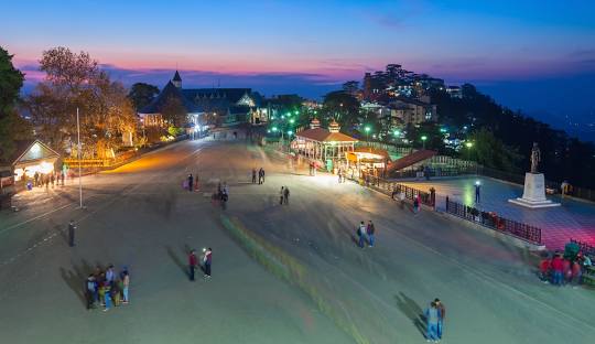 A wide open space in the heart of Shimla with stunning views of the snow-covered mountains. Perfect for sunsets, local events, and cultural vibes.